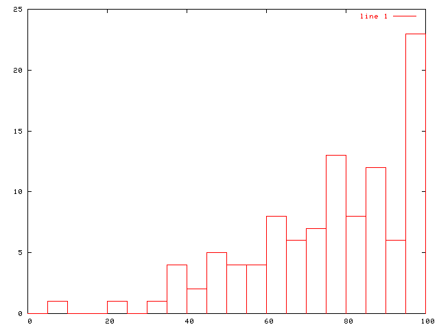 平均点は75と非常に高かった. 満点の人も何人かいました.